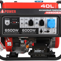 Производитель: A-ipower Модель: A6500EA - Топливо: бензин - На выходе генератора: 6 кВт, 220 B, розетки 3 шт - Работа: до 11.3 ч, бак 40 л Описание