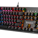 Состав: клавиатура • Назначение: настольный компьютер • Подключение: проводное (USB) • Конструкция: игровая • Цвет: золотистый, черный • Количество клавиш: 104 • Подставка под запястья: есть, отсоединяемая • Встроенная подсветка: есть • Регулировка наклона: есть • Защита клавиатуры: от воды • Кабели: клавиатура - • Аксессуары в комплекте: 8 сменных клавиш, съемник для клавиш • Размеры клавиатуры: 467x213x41 мм