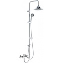 Устройство: душевая система • Смеситель: двухвентильный • Ручной душ (душевая лейка): размер 100 мм, настройки 3 шт • Верхний душ (тропический): размер 238 мм, настройки 1 шт • Комплектация: ручной душ, верхний душ, смеситель, стойка, шланг, крепление ручного душа, мыльница