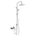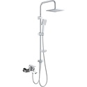 Душевая система со смесителем для ванны/душа с двумя квадратными лейками. В комплекте: ручной душ 100 мм, регулируемый по высоте и наклону держатель, верхний душ 215 мм с регулировкой угла наклона, мыльница, растягивающийся шланг в металлической оплётке 1500-1800 мм.