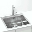 врезная на столешницу/врезная вровень со столешницей • нержавеющая сталь • фактура: сатин • размеры: 50x52.5 см • глубина чаши: 19.5 см • в шкаф шириной от 60 см • клапан-автомат