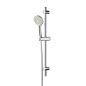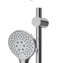 Устройство: душевой набор • Ручная лейка: размер 110 мм, настройки 3 шт • Комплектация: лейка, стойка, шланг, крепление лейки, мыльница