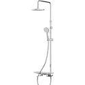 Устройство: душевая система • Смеситель: термостатический • Ручная лейка: размер 110 мм, настройки 1 шт • Верхний душ: размер 220 мм, настройки 1 шт • Комплектация: ручной душ, смеситель, стойка, шланг, крепление ручного душа