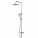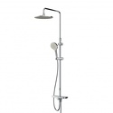 Устройство: душевая система • Ручная лейка: размер 120 мм, настройки 3 шт • Верхний душ: размер 254 мм, настройки 1 шт • Комплектация: ручной душ, стойка, шланг, крепление ручного душа, полка
