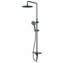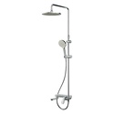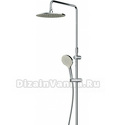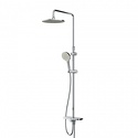 Устройство: душевая система • Смеситель: термостатический • Ручная лейка: размер 110 мм, настройки 3 шт • Верхний душ: размер 250 мм, настройки 1 шт • Комплектация: лейка, смеситель, стойка, шланг, крепление лейки