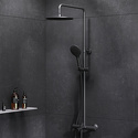 Устройство: душевая система • Смеситель: термостатический • Ручной душ (душевая лейка): размер 120 мм, настройки 3 шт • Верхний душ (тропический): размер 220 мм, настройки 1 шт • Комплектация: ручной душ, верхний душ, смеситель, стойка, шланг, крепление ручного душа