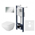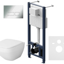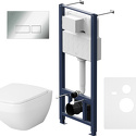 Полностью готовый к установке комплект: система инсталляции с клавишей подвесной унитаз сиденьем. Неразборная рама из стального профиля выдерживает нагрузку до 400 кг. Полностью изолированный бачок с качественной двухрежимной смывной арматурой - комфортное использование благодаря низкому уровню шума - менее 20 Дб. Укомплектован пневматической клавишей в цвете глянцевый хром. В комплекте все необходимые патрубки и крепления а также прокладка между унитазом и стеной - звукоизоляция.