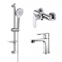 однорычажный комплект смесителей для душа/для умывальника • монтаж на стену/на раковину или столешницу