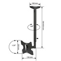 Универсальное потолочное крепление для LCD-телевизоров с возможностью регулировки по высоте. 2 степени свободы: регулировка угла наклона и вращение на 190 градусов. Потолочные кронштейны с каждым днем набирают популярность. Они активно применяются в офисных помещениях, торговых центрах, на вокзалах, аэропортах и других общественных местах, где имеются плазменные и жидкокристаллические мониторы.