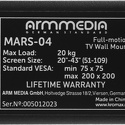 Производитель: Arm media Модель: MARS-4 - настенный кронштейн для ЖК-телевизора 20-43" - наклон 10° - поворот 90° Описание