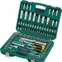 Головки торцевые подробно1/4": 4, 4.5, 5, 5.5, 6, 7, 8, 9, 10, 11, 12, 13, 14 мм ; трещетка 1/4": 45 зубов; вороток т-образный 1/4": 115 мм; удлинитель 1/4": 100 мм; гибкий удлинитель 1/4": 150 мм; карданный шарнир 1/4"; 1/2": 10, 11, 12, 13, 14, 15, 16, 17, 18, 19, 20, 21, 22, 24, 27, 30, 32 мм; головки свечные 1/2": 16, 21 мм; трещетка 1/2": 45 зубов; удлинитель 1/2": 125, 250 мм; скользящий переходник 1/2"; карданный шарнир 1/2"