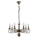 Подвесная люстра стиля классика для гостиной, кабинета или спальни имеет размеры 540х850 мм. Арматура светильника окрашена в бронзовый цвет. Лампы в комплекте - отсутствуют. В светильнике применяются лампы накаливания или светодиодная LED-лампа. Класс электробезопасности - I, степень пылевлагозащиты (IP) - 20. Максимальная мощность лампы (Вт) - 40. Светильник размещается на потолоке.