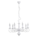 Подвесная люстра стиля классика для гостиной, кабинета или спальни имеет размеры 540х850 мм. Арматура светильника окрашена в белый цвет. Лампы в комплекте - отсутствуют. В светильнике применяются лампы накаливания или светодиодная LED-лампа. Класс электробезопасности - I, степень пылевлагозащиты (IP) - 20. Максимальная мощность лампы (Вт) - 40. Светильник размещается на потолоке.