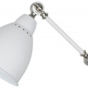 оригинальный светильник бра. отлично будет смотреться в помещениях оформленных в стиле \"техно\" или \"loft\". конструкция осветительного устройства состоит из настенной накладки круглой формы, кронштейна и плафона конусообразной формы. особую привлекательность изделию предают 2 шарнирных узла в местах сочленения деталей, которые позволяют производить регулировку положения. материал арматуры – металл. поверхность матовая. цвет белый. источник света – лампа накаливания мощностью 60w.