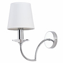 Бра стиля модерн для гостиной, кабинета или спальни имеет размеры 150x310x290 мм. Арматура светильника окрашена в хромовый цвет. Лампы в комплекте - отсутствуют. В светильнике применяются лампы накаливания или светодиодная LED-лампа. Цвет плафонов - белый, с матовой поверхностью. Материал плафонов - текстиль. Класс электробезопасности - I, степень пылевлагозащиты (IP) - 20. Максимальная мощность лампы (Вт) - 60. Светильник размещается на стене.