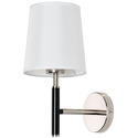 Бра стиля модерн для гостиной, кабинета или спальни имеет размеры 150x310x280 мм. Арматура светильника окрашена в серебрянный и черный цвет. Лампы в комплекте - отсутствуют. В светильнике применяются лампы накаливания или светодиодная LED-лампа. Цвет плафонов - белый, с матовой поверхностью. Материал плафонов - текстиль. Класс электробезопасности - I, степень пылевлагозащиты (IP) - 20. Максимальная мощность лампы (Вт) - 60. Светильник размещается на стене.