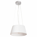 Подвесной светильник стиля модерн для гостиной, кабинета, прихожей или спальни имеет размеры 410x1200 мм. Арматура светильника окрашена в хромовый цвет. Лампы в комплекте - светодиодные [LED]. В светильнике применяются накаливания,светодиодная LED-лампа. Цвет плафонов - белый, с матовой поверхностью. Материал плафонов - текстиль. Класс электробезопасности - I, степень пылевлагозащиты (IP) - 20. Максимальная мощность лампы (Вт) - 40. Светильник размещается на потолоке.