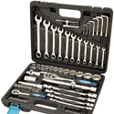 Набор: 77 шт • Ключи: комбинированные, торцевые, шестигранные • Головки: 6-ти гранные головки, свечные • Ключей-трещоток: 2 шт • Хранение: пластиковый кейс