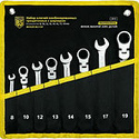 КомплектацияКлючи комбинированные трещоточные с шарниром в матерчатом чехле: 8, 10, 12, 13, 14, 15, 17, 19 мм