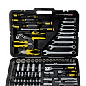 Универсальный набор инструментов Berger BG128-1214 состоит из 128 предметов, оптимально укомплектованных для эффективного выполнения наиболее востребованных видов слесарно-механических работ. Их можно использовать как на производстве, так и в домашних условиях. Рукоятки отвёрток, пассатижей и кусачек не скользят и удобно фиксируются в руке благодаря прорезиненному покрытию. Все приспособления изготовлены из высокопрочной стали, поэтому устойчивы к коррозии и воздействию масла и бензина.