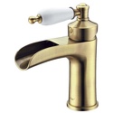 Назначение: для умывальника • Конструкция: однорычажный • Монтаж: горизонтальный • Материал: покрытие - бронза • Монтажные отверстия: 1 отверстие • Форма излива: каскадная • Душевая лейка в комплекте: нет • Донный клапан в комплекте: есть