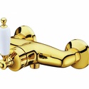Назначение: душ • Конструкция: однорычажный • Монтаж: вертикальный • Материал: покрытие - золото • Подводка: жесткая • Монтажные отверстия: 2 отверстия • Душевая лейка в комплекте: нет