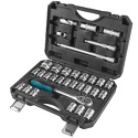 КомплектацияГоловки 1/2" (19 шт) Головки 1/2" двенадцатигранные (6 шт) Головка торцевая свечная, 1/2" (2 шт) Удлинитель 1/2":125 мм (1 шт) Удлинитель 1/2":250 мм (1 шт) Адаптер 1/2” (1 шт) Рукоятка с трещеткой квадрат 1/2 (1 шт) Шарнир карданный 1/2 (1 шт) Кейс (1 шт)