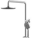 Устройство: душевая система • Смеситель: термостатический • Ручная лейка: размер 110 мм, настройки 5 шт • Верхний душ: размер 220 мм, настройки 1 шт • Комплектация: лейка, смеситель, стойка, шланг, крепление лейки