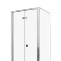 Тип: кабина, симметричная • Стенки: двухстенная, материал стекло • Двери: распашные • Габариты: 900х900х1950 мм