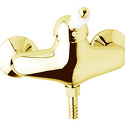 Назначение: душ • Конструкция: однорычажный • Монтаж: вертикальный • Клапан: керамический • Материал: латунь, покрытие - золото • Монтажные отверстия: 2 отверстия • Донный клапан в комплекте: есть
