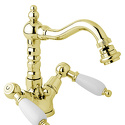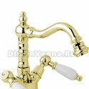 Назначение: для биде • Конструкция: двухрычажный • Монтаж: горизонтальный • Материал: латунь, покрытие - золото • Монтажные отверстия: 1 отверстие • Форма излива: традиционная • Душевая лейка в комплекте: нет • Донный клапан в комплекте: есть