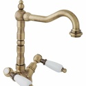 Назначение: для умывальника • Конструкция: двухрычажный • Монтаж: горизонтальный • Материал: латунь, покрытие - бронза • Монтажные отверстия: 1 отверстие • Форма излива: традиционная • Душевая лейка в комплекте: нет • Донный клапан в комплекте: есть