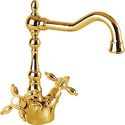 Назначение: для умывальника • Конструкция: двухрычажный • Монтаж: горизонтальный • Материал: латунь, покрытие - золото • Монтажные отверстия: 1 отверстие • Форма излива: традиционная • Душевая лейка в комплекте: нет • Донный клапан в комплекте: есть