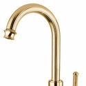 Назначение: для умывальника • Конструкция: однорычажный • Монтаж: горизонтальный • Клапан: керамический • Материал: покрытие - золото • Подводка: гибкая • Монтажные отверстия: 1 отверстие • Форма излива: традиционная • Душевая лейка в комплекте: нет • Аэратор: есть • Донный клапан в комплекте: есть