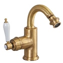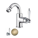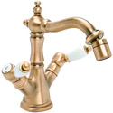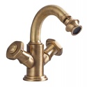 Назначение: для биде • Конструкция: двухрычажный • Монтаж: горизонтальный • Материал: латунь, покрытие - бронза • Монтажные отверстия: 3 отверстия • Форма излива: традиционная • Душевая лейка в комплекте: нет • Донный клапан в комплекте: есть