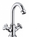 Назначение: для умывальника • Конструкция: двухрычажный • Монтаж: горизонтальный • Материал: латунь, покрытие - хром • Подводка: гибкая • Монтажные отверстия: 1 отверстие • Форма излива: традиционная • Душевая лейка в комплекте: нет • Аэратор: есть • Донный клапан в комплекте: есть