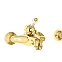 Назначение: ванна+душ • Конструкция: однорычажный • Монтаж: горизонтальный • Клапан: керамический • Материал: латунь, покрытие - золото • Монтажные отверстия: 2 отверстия • Форма излива: традиционная • Душевая лейка в комплекте: есть • Держатель для душевой лейки: настенный держатель • Аэратор: есть