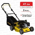 Двигатель: бензиновый, 2200 Вт, 3 л.с. • Покос: ширина 41 см, мешок 40 л • Вес косилки: 23 кг