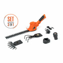 Комплектация- Садовые ножницы;- Насадка кусторез;- Телескопическая штанга;- Аккумулятор 2,0 Ач - 1 шт;- Зарядное устройство;- Инструкция;- Коробка.