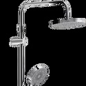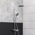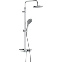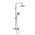 Устройство: душевая система • Смеситель: термостатический • Ручной душ (душевая лейка): размер 125 мм, настройки 3 шт • Верхний душ (тропический): размер 235 мм, настройки 1 шт • Комплектация: ручной душ, верхний душ, смеситель, стойка, шланг, крепление ручного душа, полка