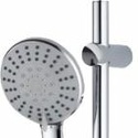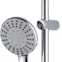 Устройство: душевой набор • Ручная лейка: размер 120 мм, настройки 5 шт • Комплектация: ручной душ, стойка, шланг, крепление ручного душа, мыльница