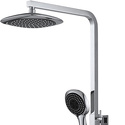Устройство: душевая система • Смеситель: джойстик • Ручная лейка: размер 115 мм, настройки 3 шт • Верхний душ: размер 220 мм • Комплектация: ручной душ, смеситель, стойка, шланг, крепление ручного душа, полка