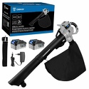 Комплектация- Корпус воздуходувки – 1 шт.- Верхняя насадка – 1 шт.- Нижняя насадка (нижняя насадка с колесами, нижняя насадка)– 2 шт.- Мусоросборник – 1 шт.- Аккумулятор 4,0 Ач – 2 шт.- Зарядное устройство – 1 шт.- Плечевой ремень – 1 шт.- Руководство по эксплуатации- Коробка