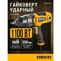| 119021, Россия, г. Москва, ул. Тимура Фрунзе, д. 11, строение 44, этаж 5 Гайковерт DEKO DKIW1100, ударный, 1100Вт, 550Нм, сетевой, в кейсе Доставка — от 49 руб. Из Москвы. | 9 500 руб. 12 599 руб. -25% | В магазин | |