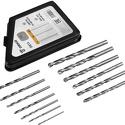 Комплектация13 сверл диаметром 1.5, 2, 2.5, 3, 3.2, 3.5, 4, 4.5, 4.8, 5, 5.5, 6, 6.5мм.