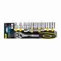 КомплектацияГоловки: 10, 11, 12, 13, 14, 15, 17, 19, 21, 24 мм Трещоточный ключ 45 зубцов Удлинитель 4 дюйма