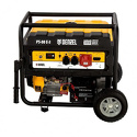 Топливо: бензин • На выходе генератора: 6 кВт, 380 В, розетки 3 шт • Работа: до 10 ч, бак 25 л • Габариты: 89 кг