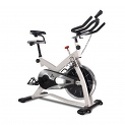 Вертикальный механический спин-байк с ременным типом привода и колодочной системой нагружения. Изменение нагрузки с помощью удобной рукоятки на корпусе тренажера. Предусмотрен экстренный тормоз. Спортивное сидение регулируется в вертикальной и горизонтальной плоскости, и позволяют подобрать удобную посадку для тренировки. Питание компьютера от батареек (тип ААА, 2 шт). На раме установлен держатель для бутылки. Для перемещения тренажера в помещении установлены колеса.