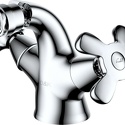 Назначение: для умывальника • Конструкция: двухрычажный • Монтаж: горизонтальный • Клапан: керамический • Материал: латунь, покрытие - хром • Подводка: гибкая • Монтажные отверстия: 1 отверстие • Форма излива: традиционная • Душевая лейка в комплекте: нет • Аэратор: есть • Донный клапан в комплекте: есть