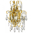 Бра стиля модерн для гостиной, кабинета или спальни имеет размеры 290x370 мм. Арматура светильника окрашена в латунный цвет. Лампы в комплекте - отсутствуют. В светильнике применяются лампы накаливания или светодиодная LED-лампа. Цвет плафонов - неокрашенный, с прозрачной, рельефной поверхностью. Материал плафонов - хрусталь. Класс электробезопасности - I, степень пылевлагозащиты (IP) - 20. Максимальная мощность лампы (Вт) - 25. Светильник размещается на стене.